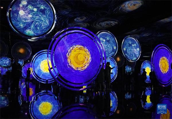 10月12日,在意大利罗马,观众在展览上的沉浸式多媒体厅参观。
