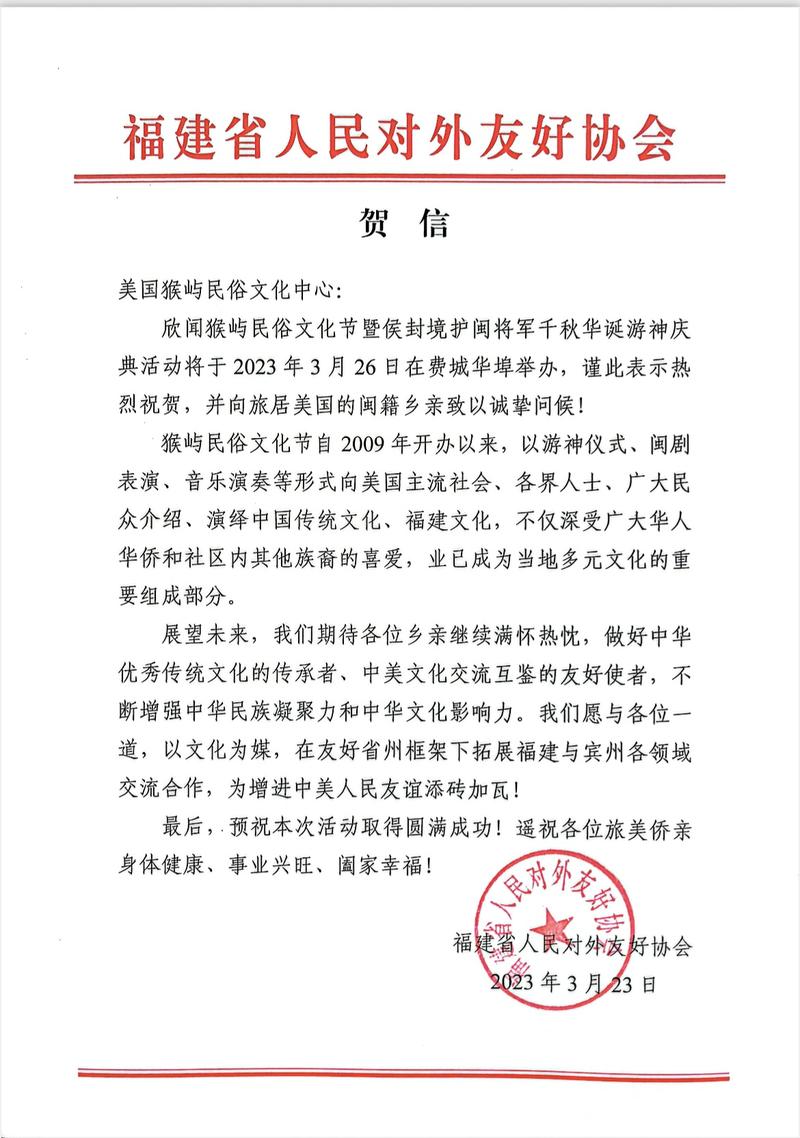 福建省人民对外友好协会贺信