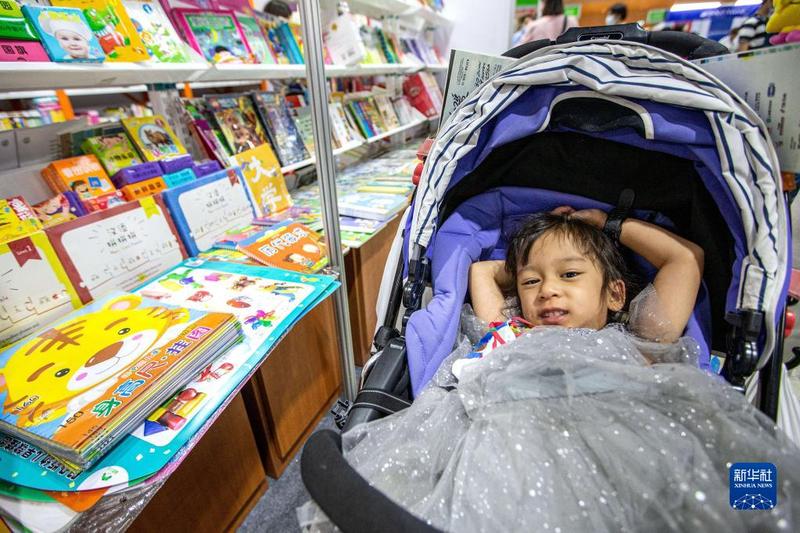 这是3月30日在泰国曼谷国际书展上拍摄的一名儿童。