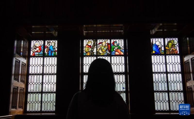 4月24日,一名游客在澳大利亚悉尼新南威尔士州立图书馆的莎士比亚藏书馆内参观。