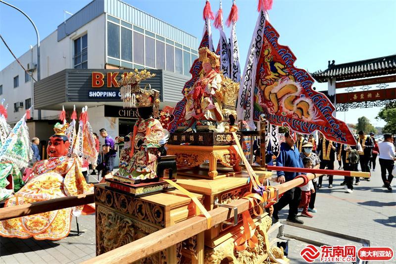 东南网澳大利亚11月1日讯(特约记者 兰木)近日,由澳大利亚华人联谊会、澳大利亚妈祖文化交流联合会、澳大利亚纽省天后宫委员会联合主办,澳大利亚东方歌舞团协办的南半球第三届妈祖巡游暨重阳节大型活动在卡市(Cabramatta)成功举办,吸引了近千民众参与。