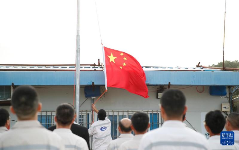 1月29日,中国驻瑙鲁使馆复馆小组举行升国旗仪式。新华社发(陈国龙摄)