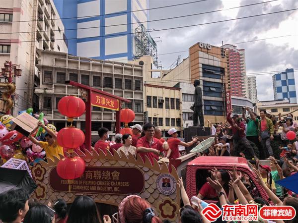 2月10日是大年初一,除了在王彬街举行舞狮舞龙表演,当天还将有菲华团体准备的数十辆花车进行游行,一路上撒红包,东南网菲律宾站参与其中。中国驻菲律宾大使黄溪连出席新春花车巡游活动,在花车行进过程中与沿途民众亲切互动,并派发新年红包及糖果、年糕等节庆食品。当地民众用中文高呼“恭喜发财”“新年快乐”,衷心祝福菲中关系更加美好。