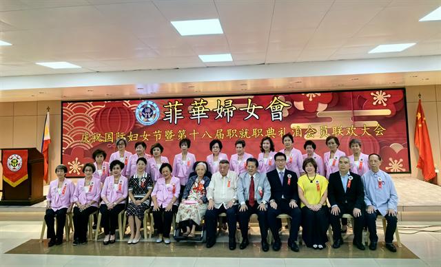 东南网3月7日讯(特约记者 洪宾宾)近日,菲华妇女会在菲华商联总会(以下简称“商总”)一楼庆祝一年一度国际妇女节,并举行第十八届职员就职典礼暨会员联欢大会。大会特别邀请中国驻菲律宾大使馆参赞兼总领事王悦致辞,商总理事长施东方博士任主讲人,林伟瑶任监誓员。名誉会长王李淑敏女士担任主席,副秘书长留金枝担任大会司仪。