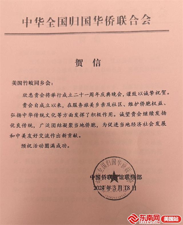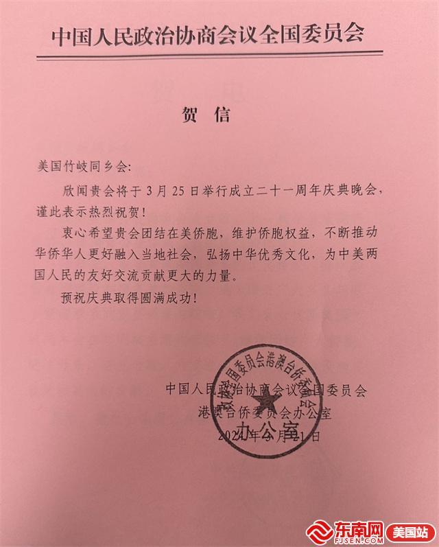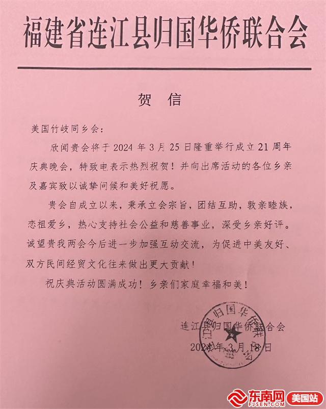 东南网3月26日讯(特约记者 纽约墨人)3月25日,美国福州竹岐同乡会(以下简称“同乡会”)成立二十一周年庆祝晚会在纽约举行。