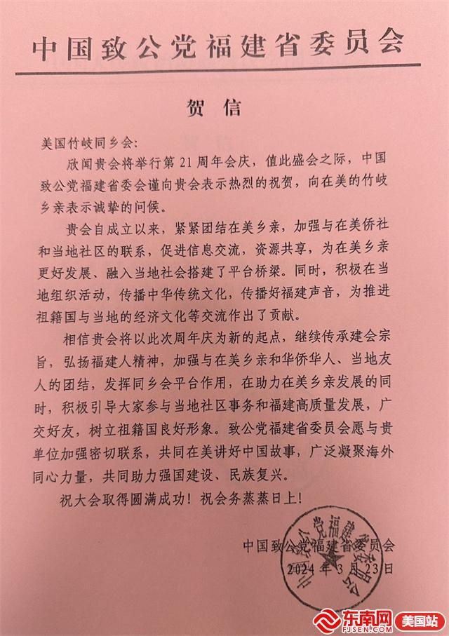 中国致公党福建省委员会贺信