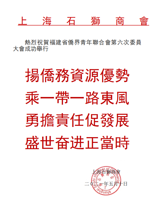 上海石狮商会 贺电