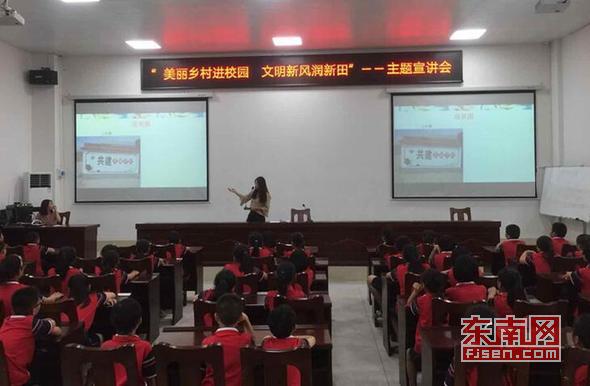 美丽乡村进校园 东南网莆田6月11日讯(通讯员 李群芳 林娜)为进一步推进枫亭镇美丽乡村建设,深化开展乡风文明建设行动,搭建美丽乡村工作和校园青春力量的良好桥梁,近日,由仙游枫亭镇共建办、文明办、团委联合开展的“美丽乡村进校园,文明新风润心田”主题宣讲活动在枫亭中心小学举行。