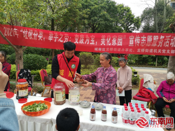 “垃圾分类、举手之劳,变废为宝、美化家园”宣传志愿服务活动 龙桥街道 供图 东南网莆田3月22日讯(通讯员 翁丽芳 本网记者 陈玲玲)近日,莆田城厢龙桥街道办事处组织干部职工、党员在雅颂居小区开展“垃圾分类、举手之劳,变废为宝、美化家园”宣传志愿服务活动。 当天上午,龙桥街道邀请城厢区环卫工作人员为雅颂居居民介绍环保酵素的用途与制作方法,并现场指导居民用提前准备好的新鲜水果皮或新鲜菜叶,按照配比,加入红糖、清水,亲自体验环保酵素的制作。活动中,龙桥街道志愿者还在小区进行环境卫生清洁,并为居民们分发生活垃圾分类手册,让居民充分认识到垃圾分类的重要性。 通过这次活动,提高了居民们对垃圾分类知晓率、参与度,推进垃圾分类工作落到实处,营造生活垃圾分类人人有责、人人参与的社会氛围。