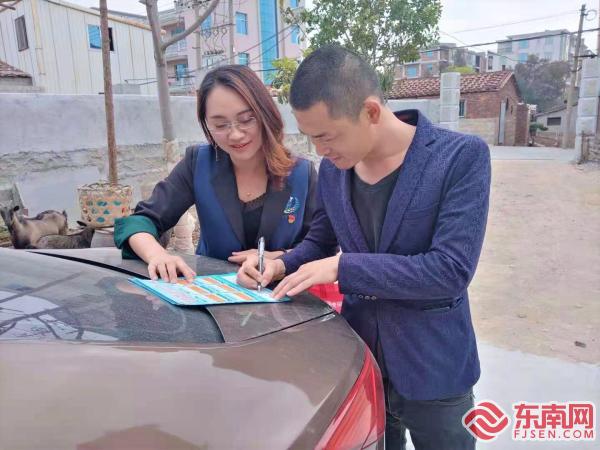 周新芷指导村民填写防诈调查问卷,向村民普及防诈知识 |