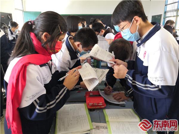 学生们正在讨论 东南网莆田12月7日讯(本网记者 卢建伟 文/图)近年来,莆田市仙游县深入推进课堂教学改革,以构建指向核心素养的课堂教学新样态为主攻方向,进一步转变教师的教学方式和学生的学习方式,提倡学校根据具体情况打造各具特色的高效课堂新模式,力促教育教学质量大提升。 作为福建省首批义务教育教改示范校建设学校,仙游第一中学全体师生积极投身新时代教育教学改革的潮流之中,全面开展“读思达”教改,走出一条符合学校实际、独具特色的教改之路。 据介绍,“读思达”教学法改革的特点,是用“问题解决”作为课堂内外主线,通过互动式课堂教学模式,着力构建高效课堂。“课内力求做到基本知识和方法能够当堂消化、训练、达标、反思、提升,课外又给予学生合适的反思、巩固、拓展的空间。”仙游第一中学校长黄桂福介绍,“读思达”教学法倡导学生自主学习与教师引导提升相结合、个人独立思考与小组合作评议相结合、课内适应训练与课外巩固拓展相结合,着力培养学生的阅读力、思考力、表达力。
