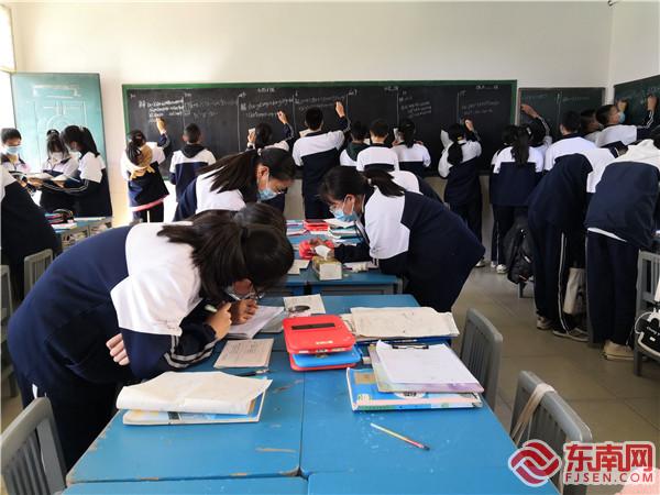 学生们上台笔头展示 仙游第一中学“读思达”、华侨中学“三段六环”、现代中学“三主六环”......从2019年9月起,仙游县以华侨中学、现代中学等8所学校为试点,成立初中课改教研片区,组织教学资源编写,并把课改资料编写和集体备课结合起来,让片区每位老师精备一节课,再集中研课探讨,结合各课改样本校的实际情况,设计各校特色的高效课堂教学设计、导学案和教学课件,着力构建高效课堂教学体系。