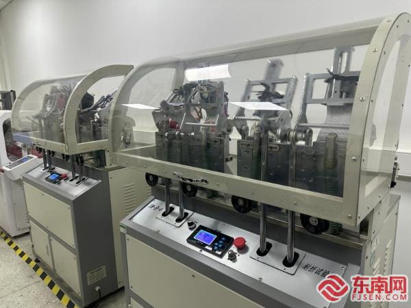 检测人员对莆田鞋进行透气性测试 东南网莆田4月18日讯(本网记者 章逸琳 文/图)鞋服产业是莆田市当家产业,也是莆田市首个千亿元产业集群。去年,莆田荣获“中国鞋都”称号,这就意味着莆田地区生产的鞋子要有过硬的质量。日前,在莆田海关国家鞋类检测中心,数名检测人员正对莆田鞋企生产的鞋类产品,进行各项测试。 记者在实验室看到,成品鞋耐折试验机正在高速运转。“从鞋类耐用性能着手,最为重要的技术指标耐折性能,国内相关标准要求均为连续屈挠4万次,而‘莆田鞋’系列团体标准是5万次。”莆田海关综合技术服务中心研究员唐振华介绍,早在2015年,鞋检中心与政府相关部门及鞋业协会合作,牵头制订了“莆田鞋”系列团体标准。