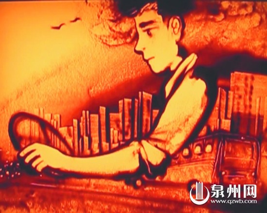 “80后”小伙陈益谦是晋江永和人,此前,东南早报曾报道他的沙画艺术,他也长期关注东南早报的报道。连日来,东南早报“最美司机”与“最美乘客”的持续追踪报道引起他的注意,特别是冯师傅晕厥倒下前后17秒发生的一切,让他深为震动,觉得应该做些什么。最终,他决定通过沙画这种艺术形式来再现这段惊心动魄的经历。他仔细阅读早报报道,确认事发经过,并想像事发情景……他的情绪一度陷入伤感中。