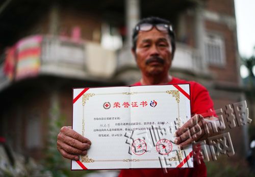 正是想到那么多人在等待器官救命,器官是那么稀少宝贵,张元章才拿起志昂的荣誉证书,站在记者的镜头前。