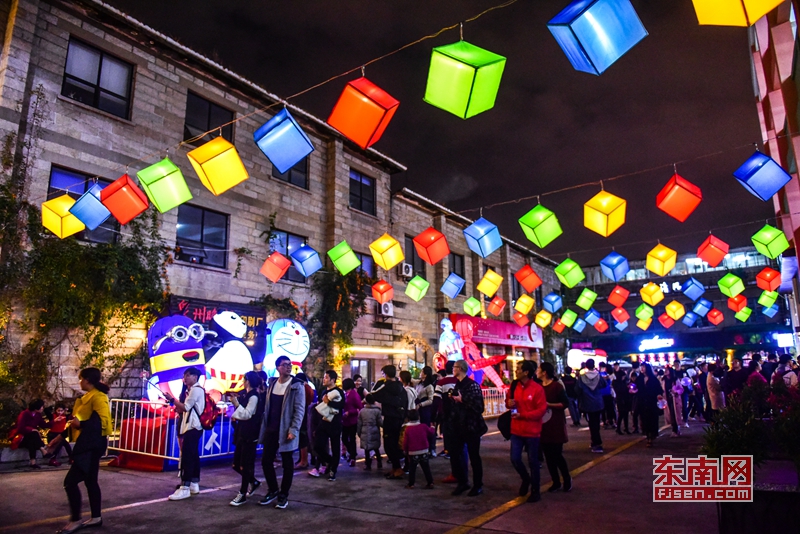 甲第门的卡通特色花灯在夜色中五彩斑斓。东南网记者 林婕 摄