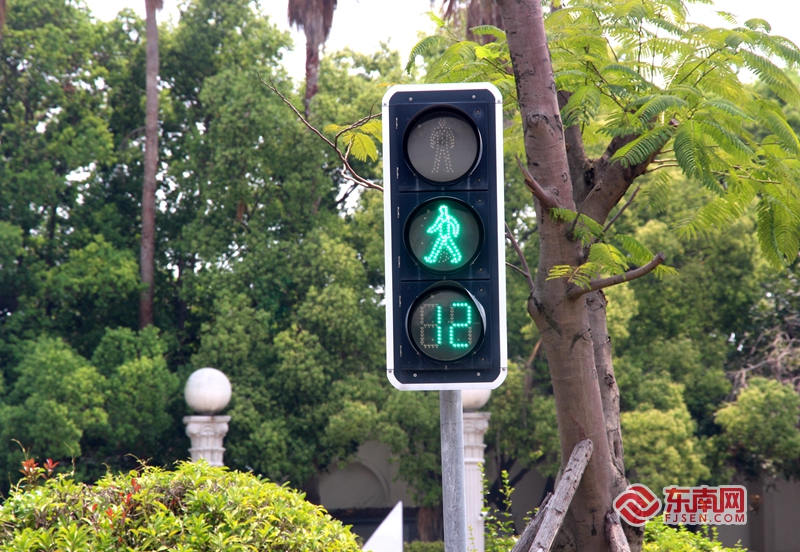 交通灯与周围绿植相映成趣。东南网记者 黄雨昕 摄