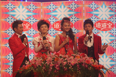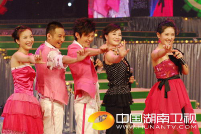 湖南卫视2007春节联欢晚会主持:李维嘉 谢娜 曹颖 何炅(从左到右)