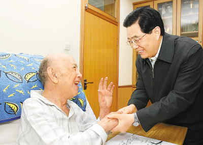 新春佳节即将到来之际,中共中央总书记、国家主席、中央军委主席胡锦涛19日上午分别来到钱学森、吴文俊家中,亲切看望为我国科技事业作出杰出贡献的两位著名科学家,代表党中央向他们表示衷心的祝福。(1月20日《人民日报》)