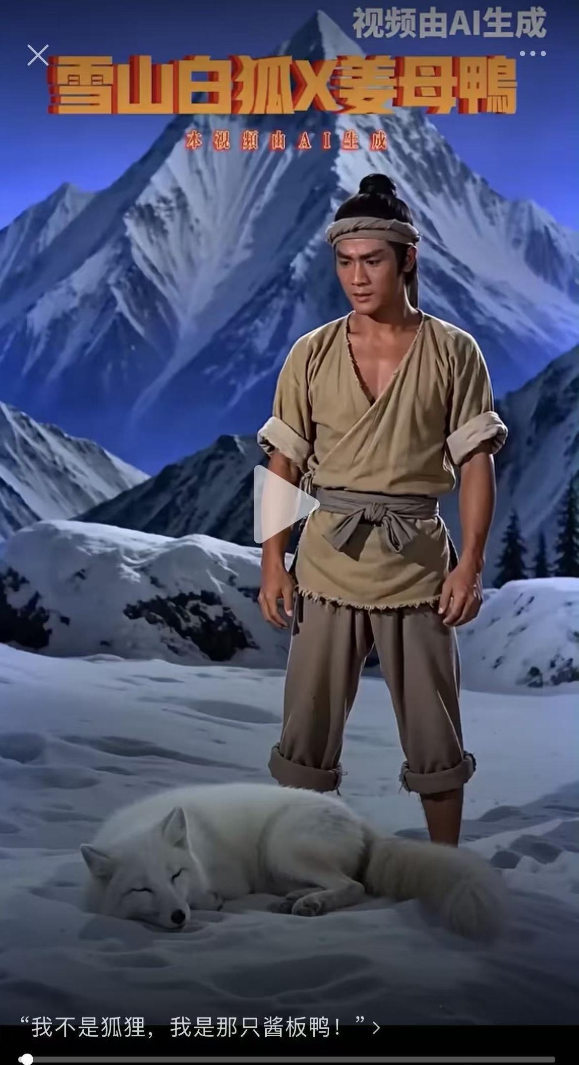 AI短片《雪山白狐X姜母鸭》视频截图 数十年前,文化创作与表达还属于少数人的专属领域,普通大众大多只能作为文化接受者,被动欣赏专业创作者的作品,甚至一度有声音认为国人缺乏创新与表达能力。而如今《雪山救狐狸》的走红,直观展现了文化表达的平民化转变。互联网的普及打破了传播的壁垒,社交平台让创意能够快速触达亿万受众,AI技术的发展则进一步降低了创作门槛,让普通人无需专业技能就能将灵感转化为作品,民间创作的活力就此被彻底释放,人人皆可创作的文化景观成为现实。