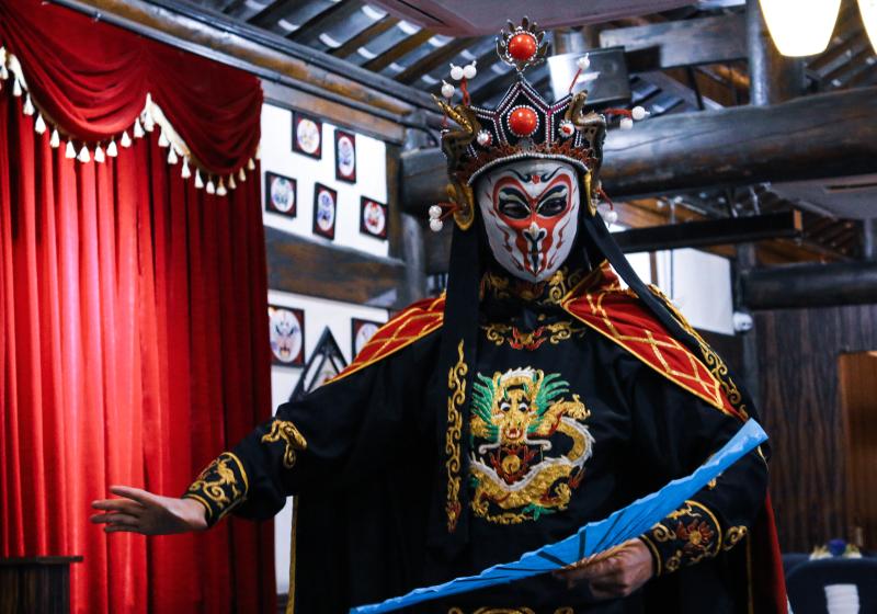 川剧是传统戏曲剧种之一。表演者通过熟练的技术来变换面谱,不同的面谱代表了不同的人物或是性格,而且面谱把抽象的人物性格化为外在的表现。川剧是一种很珍贵的文化遗产。