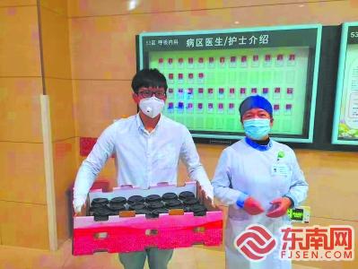郭屹凡向医护人员赠送咖啡。(受访者供图)