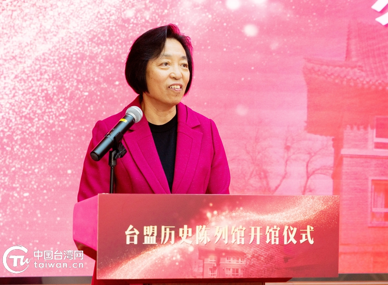 全国政协副主席、台盟中央主席苏辉在发言。(图片来源:台盟中央) 全国政协副主席、台盟中央主席苏辉,全国人大常委会委员、台盟中央常务副主席李钺锋,全国政协港澳台侨委驻会副主任王伟,台盟中央原副主席李敏宽,中共中央统战部一局局长桑福华,全国台联副会长杨毅周,全国政协港澳台侨委办公室主任曹军,中央台办宣传局副局长朱凤莲,台湾地区政治受难人互助会秘书长蔡裕荣,辜金良文化基金会董事长、台湾知名统派作家蓝博洲,在京台商、台青代表,参与台盟历史陈列馆建设的盟内专家、顾问,台盟前辈子女代表,老盟员代表以及台盟中央各部门负责同志出席活动。全国政协常委、台盟中央副主席吴国华主持。 苏辉在讲话中表示,台盟历史陈列馆全方位、全景式展现了台盟坚持中国共产党领导、同心携手奋进的75年历史,展现了台盟坚持台湾人民爱国主义光荣传统、矢志祖国统一的75年历史。它承载着一代代台盟盟员的故乡恋、家国情、民族心,是全体台盟人献礼中共二十大、以史明志向复兴的一份厚重礼物。台盟历史陈列馆镌刻着与党同心的鲜明标识,传递着爱国爱乡的炽热情怀。 桑福华在致辞中指出,台盟历史陈列馆作为展示台盟发展历程、弘扬优良传统的重要载体、重要平台,将穿越时空,以富有生命力的生动传承,教育引导广大盟员不忘合作初心,矢志不渝跟党走,携手奋进新时代。同时,也将以真实的历史展示多党合作成果,讲好多党合作的生动故事,展示中国新型政党制度的独特魅力。 杨毅周指出,作为台湾史、两岸关系史的教育传播窗口,台盟历史陈列馆将成为两岸同胞交流交往的重要平台,在弘扬台湾同胞爱国主义传统、巩固两岸同胞共同的历史记忆、深化两岸命运共同体的认同等方面必将起到积极的作用。 台湾劳动党主席吴荣元、台湾统一联盟党主席戚嘉林从岛内发来祝贺视频。老盟员代表郑世凯、参与筹展的台湾知名统派作家蓝博洲分别致辞。
