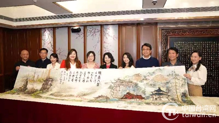 六位艺术家共同创作的《沪台八景图》(图片来源:上海市台办) 中国台湾网11月10日讯 近日,第十一届两岸艺术新天地论坛在黄浦江畔的豫园花园如期举办。论坛由上海黄浦区台胞台属联谊会、台湾东门美术馆和台湾中华书道学会共同举办,来自两岸的四十多位嘉宾和艺术家出席了开幕式。 据介绍,第十一届“两岸艺术新天地论坛”首次增设“青少年未来艺术发展关爱”活动暨“童心源”两岸青少年中华故事绘画大赛。鼓励两岸青少年围绕中华传统故事开展画作创作,引导青少年深化传统文化认知,坚定树立文化自信,传承中华文化血脉。 开幕仪式后,参加论坛的领导和嘉宾一起观看了《跨海·传承——台湾书画作品展》。此次参展的六十八幅作品体现了书法、国画、篆刻等中华民族喜闻乐见的传统艺术形式和特点,涵盖了中华历史文化、自然风光、两岸人文风情、崇尚社会和谐等丰富内容。书画艺术展将于11月5日至13日在豫园听涛阁展厅持续展出。 在主题论坛环节,六位来自两岸的优秀青年艺术家针对“海派文化在两岸传统艺术融合与创新中的作用与地位”共同开展研讨和互动,艺术家们通过跨学科的交流和多视角的拓展分享了各自的感悟和心得。 最后,六位艺术家现场携手共同创作了一幅艺术作品《沪台八景图》,将论坛推向了高潮。 |