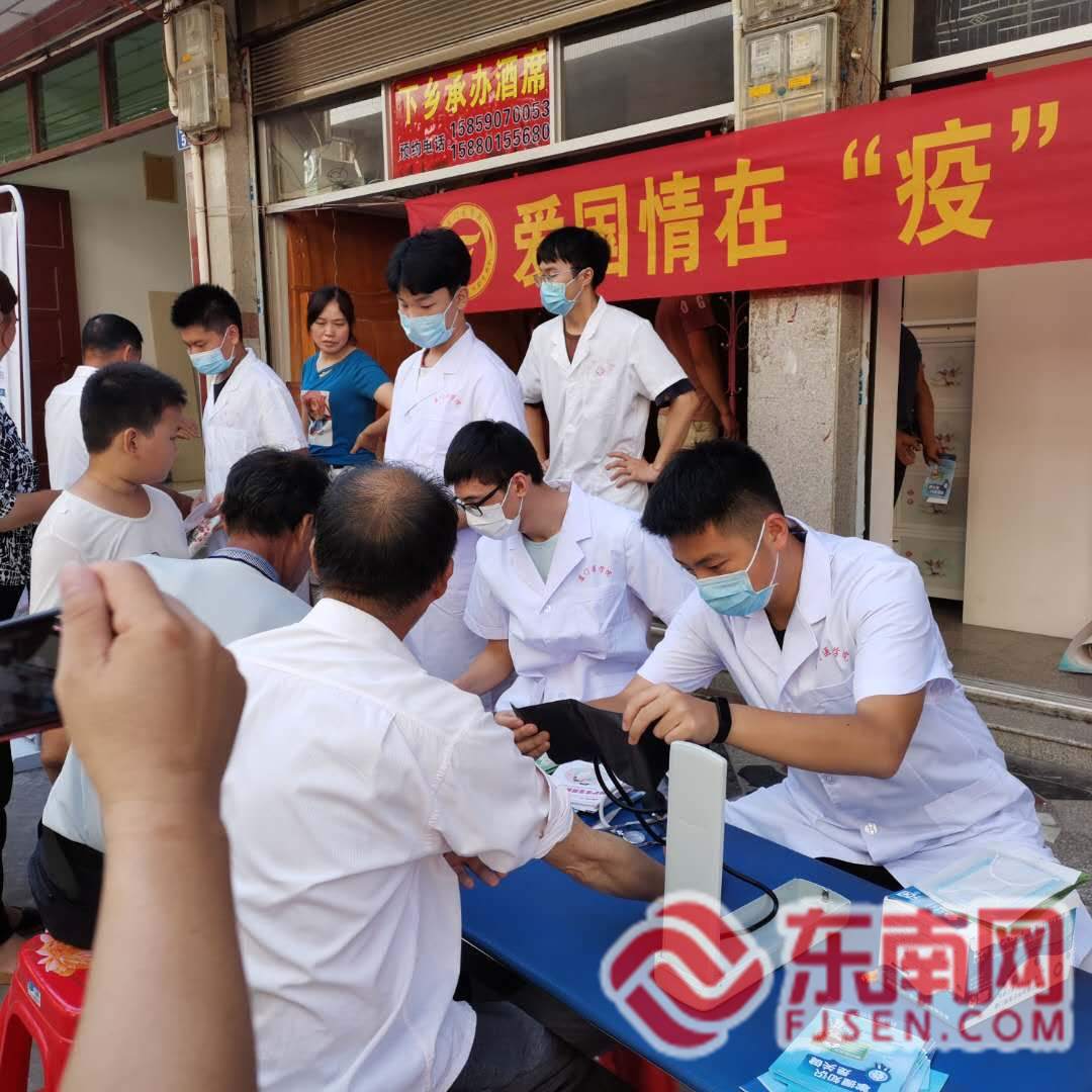 图4 实践队员疫情防控宣讲(本网记者摄) Day2—厦医学子暖心义诊共抗疫 8月9日上午八点,实践队准时来到了义诊地点,使用卫生院提供的电子血压计、额温枪等物品,与卫生院的医生们一同为接踵而来的村民们有序地进行血压和体温的测量,了解村民们先前的健康状况,并给出相应的指导意见。此次 义诊服务了约150人,持续了3个小时,取得了良好的反响。 义诊结束后,卫生院院长陈纯来与实践队就此次实践活动进行亲切地交谈,给出了自己的意见,对我校本次三下乡下基层实践活动表示肯定,并殷切希望开展更多此类活动,为村民们宣传更多的健康知识,提高对自身生命健康安全的重视。