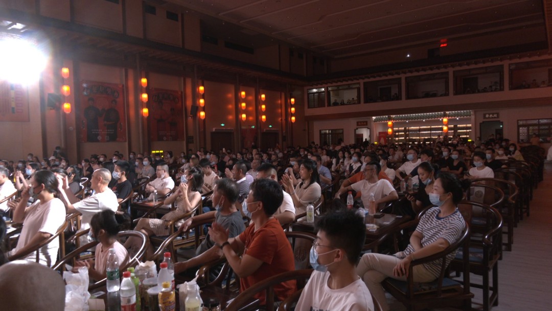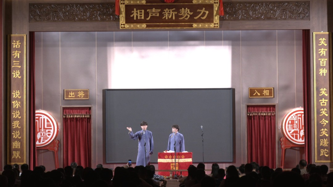 晚上8点,随着一段快板绝活亮相,演出正式开始。台上演员一捧一逗默契十足,台下观众欢声不断笑语不停,首场演出上座率达到上限75%。