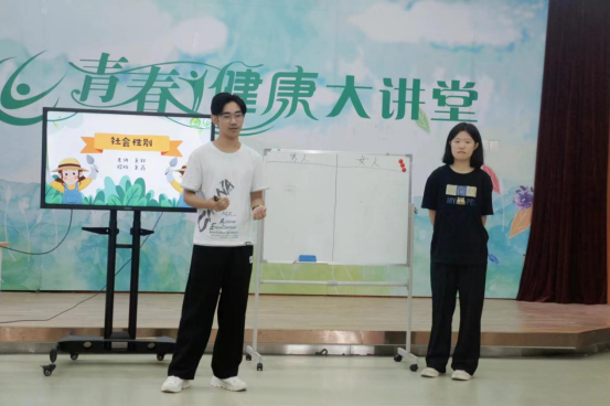 2023年10月31日下午,福州外语外贸学院青春健康同伴社在学生发展中心二楼青春健康大讲堂开展了主题为:同伴教育课,主题为:社会性别——性别视角下的男女。本次同伴教育课由主持人王轩及搭档王鑫主持,来自不同学院的青春健康同伴社成员共同参与。