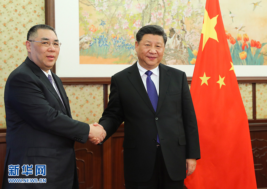 12月17日,国家主席习近平在中南海会见来京述职的澳门特别行政区行政长官崔世安。 新华社记者 谢环驰 摄