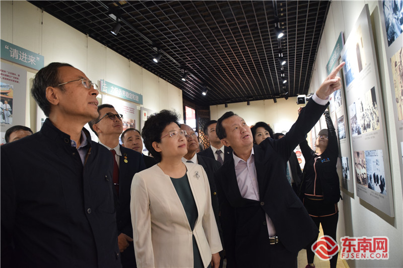 中国侨联主席万立骏(左一),福建省委常委、统战部部长邢善萍(左二)参观福建华侨主题馆。 陈佳丽 摄 福建华侨主题馆设有“领袖与侨”展示厅、“海丝今古·砥砺前行”“华侨历史·波澜壮阔”长廊、“华侨精神”展示厅、“百国百侨”风物展”5个固定展览,2个定期举办各类涉侨主题展览的流动展厅,以及海外社团友谊墙、华文课堂、侨心书屋、海外中餐文化展示厅等。目前,“初心与使命——福建省侨联成立60年”图片展正在流动展厅展出。 陈式海表示,福建华侨主题馆的展览空间较以往有所增加,旨在更好地弘扬华侨文化、华侨精神,围绕“福侨文化工程”品牌建设,拓展福建华侨历史、人文、教育内涵,努力打造华侨爱国主义教育基地和福建海外侨胞的精神家园。