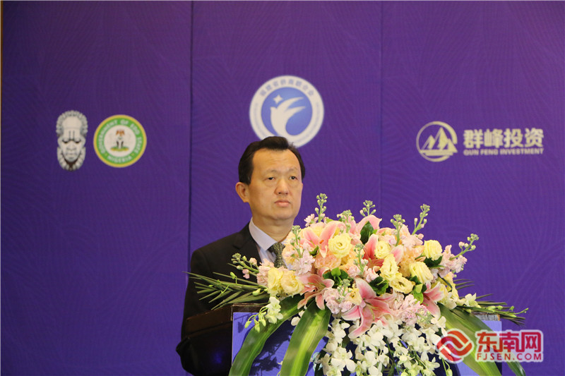 福建省侨联主席陈式海致辞。 陈式海代表省侨联对与会嘉宾和乡亲的到来表示欢迎。他说,尼日利亚是非洲人口最多的国家和最大的经济体,更是“一带一路”沿线重要的节点国家,吸引了众多闽籍企业家前往开展事业,令当地涌现出了一批实力雄厚的大型企业。他希望与会企业家把握好本次推介会的机会,与埃多州政府进行面对面沟通,努力实现互补优势、共赢发展,福建省侨联、省侨商会也将积极支持侨资企业“走出去”,融入“一带一路”建设的宏伟蓝图。