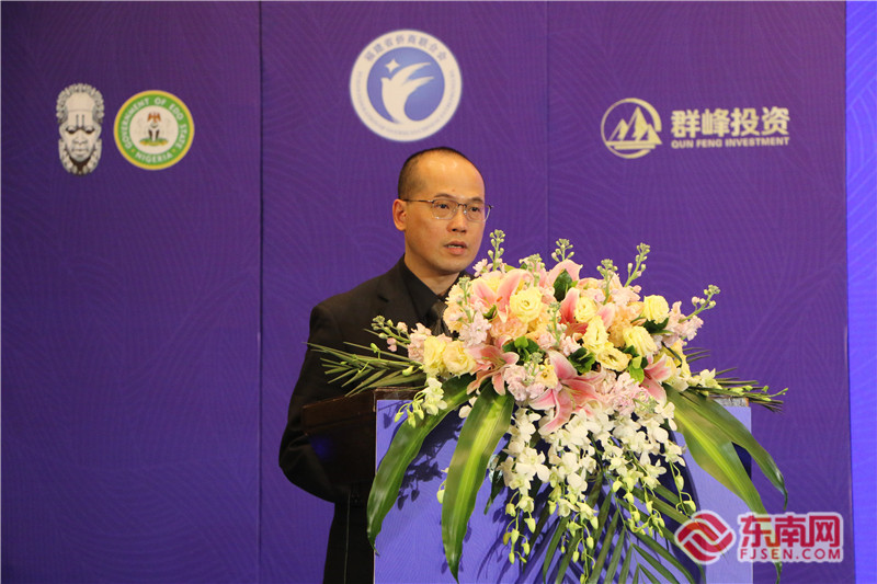 尼日利亚福建同乡总会会长郑旭升致辞。 郑旭升表示,尼日利亚福建同乡总会自2016年成立以来,始终积极团结在尼福建乡亲,在加强两国经贸往来、助力“一带一路”建设等方面作出了积极贡献。尼日利亚福建同乡总会今后将助力更多的福建企业和技术“走出去”,为来尼投资企业提供从考察、立项到选址等的一条龙协助服务,进一步促进尼日利亚与福建间的经贸交流合作。