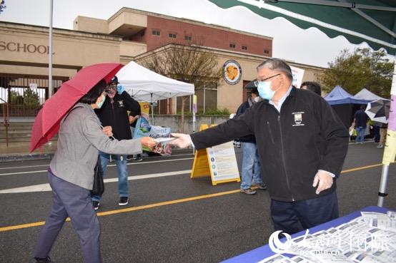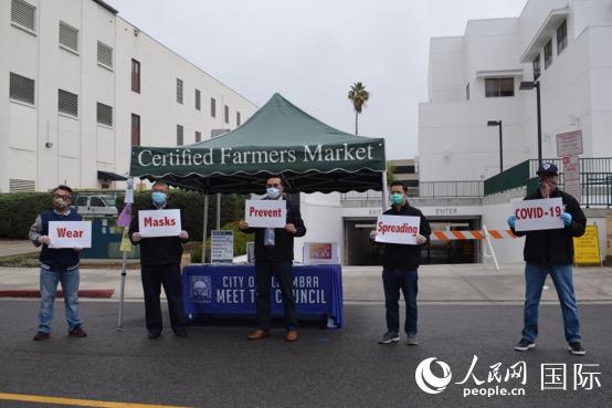 人民网洛杉矶4月5日电(记者王如君)鉴于新冠病毒疫情在美国日益严重,美国各级政府均呼吁民众居家隔离,有必要出外时,除保持社交距离外,更建议佩戴口罩以防病毒传播。4月5日,大洛杉矶地区的阿罕布拉市前市长沈时康、现任市长罗斯·马扎和副市长戴维·梅杰等率领工作人员走上市中心街头,向当地社区居民派发免费口罩。 知悉的民众一早就排队等候领取口罩,市政府工作人员提醒民众保持六英尺(1.8米)的社交距离。250包、每包五个口罩,一小时内就派发完毕。民众纷纷表示感谢善心人士的捐赠,让他们及时有防御物品可用。 沈时康表示,感谢居住在阿罕布拉善心人士的捐赠,近期将在市内超市门前继续捐赠口罩,此外还会同市府合作向老人公寓的居住者提供餐食服务的同时并捐赠口罩。下星期向会当地警局赠送普通口罩供警员日常使用。 沈时康说,此次派发物资来自华人社区民众的自发吸引捐赠。“希望本次公益活动能够抛砖引玉,和呼吁更多华人以及其他族裔的朋友参与支持回馈社区行动,大家团结起来把防御病毒物资直接给予最需要的弱势群体。”