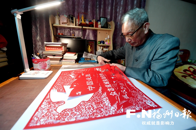 罗源80岁老人巧手剪纸 歌颂抗疫精神