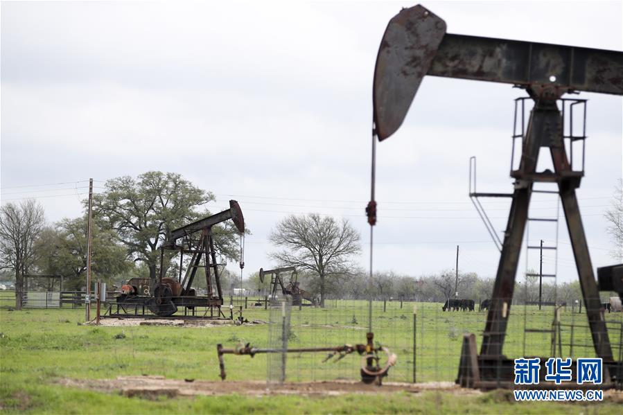 这是2019年3月12日拍摄的美国得克萨斯州石油小镇卢灵的资料照片。 新华社记者王迎摄 新华社纽约4月20日电(记者刘亚南 潘丽君)受美国石油市场供应严重过剩、合约即将到期以及得克萨斯州将决定是否减产等因素影响,纽约油价20日早盘低开,盘中持续走低,尾盘加速下跌,收盘时罕见跌入负值,跌幅超300%。 当日尾盘,即将于21日到期的纽约商品交易所5月交货的轻质原油期货价格罕见跌为负值。纽约商品交易所6月交货的轻质原油期货价格也大幅下跌18.37%,收于每桶20.43美元。 截至当天收盘,纽约商品交易所5月交货的轻质原油期货价格下跌55.90美元,收于每桶-37.63美元,跌幅为305.97%。6月交货的伦敦布伦特原油期货价格下跌2.51美元,收于每桶25.57美元,跌幅为8.94%。
