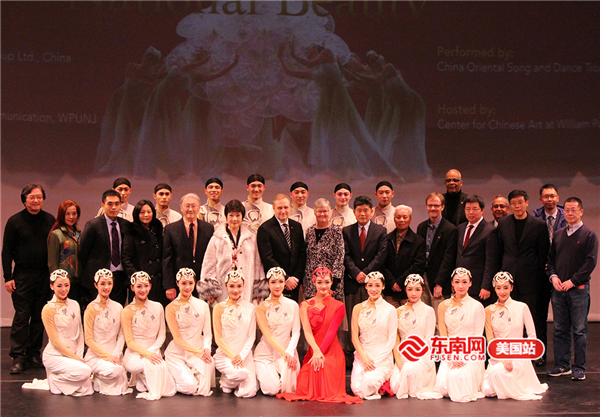2019年,威廉帕特森大学校长、林洁辉女士等和受邀来访的东方歌舞团《国色》剧组合影(丛志远教授提供)