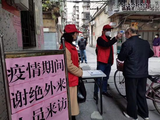 “请您下车测量体温,登记下您的个人信息、联系方式。”“疫情期间,小区谢绝外来人员到访,请尽量减少不必要的接触。”“您要送的东西放在这边,让业主来这边领取就可以了。”……在各个小区出入口,身着红色马甲的党员志愿者们认真做好值班值守工作,守好守严小区“安全门”。