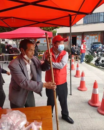 陈主义在核酸检测点帮助行动不便的群众。 安溪县委文明办供图