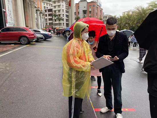 “今天是第一次参加核酸检测志愿服务,前些天跟同事参加过疫情防控宣传活动,疫情之下,需要我们每个志愿者勇敢站出来,为家乡出一份力。”安溪建行志愿者谢月治到城东社区参加志愿服务,主要工作是参与现场秩序维护,扫码测温等,她说虽然遇到下雨天,但大家都很配合,整个核酸采样过程非常顺利高效。