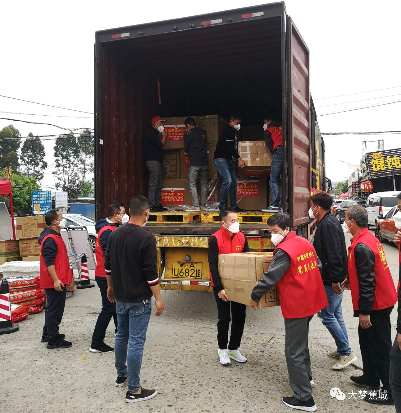 在医护人员、基层工作者、志愿者坚守抗疫一线的同时,社会各界爱心人士、企业、商会和民间组织纷纷加入抗疫大军,为疫区工作人员和居民群众捐赠防疫物资、款项,同心战疫。蕉城区建立了首批11家防疫保供配送商家联盟,为封控区、管控区内受疫情影响的居民群众配送物资,保障基本生活。同时,对于封控区、管控区的婴幼儿奶粉等特殊物资,相关部门、机构将提供属地订购、送货上门服务。防疫物资送达疫区后,立即由志愿者清点并搬进转运车,点对点配送至各封控村配送中心,再由村内工作人员和志愿者及时分送到群众家门口,最后由群众自行领走。