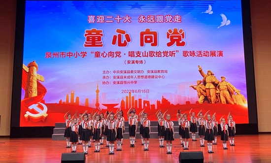 为喜迎党的二十大胜利召开,今年来,安溪县各级各类学校纷纷组织开展形式多样的“童心向党”教育实践活动,在全县唱响爱党爱国主旋律,引导未成年人向英雄学习、向先辈学习、向榜样学习,培养担当民族复兴大任的时代新人。