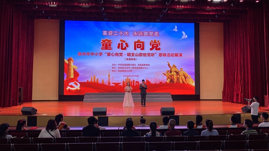 文明风6月17日讯(记者 林杰 通讯员 吴远景)6月16日下午,由安溪县委文明办、安溪县教育局共同主办的“喜迎二十大 永远跟党走”——2022年安溪县中小学生“童心向党·唱支山歌给党听”歌咏活动展演在安溪恒兴中学大礼堂举行,来自全县中小学校的12支代表队参加展演,传唱各类红色经典歌曲。