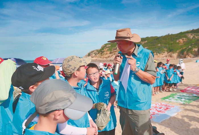 此后,他带领队员组织开展“蓝海环保行动”,走进大街小巷发放宣传单、拉横幅、发放环保购物袋,身体力行宣传海洋环保。团队还积极同与黄岐半岛一衣带水的马祖开展合作,推动环马祖澳海洋生态保护行动开展,共同守护碧海银滩。