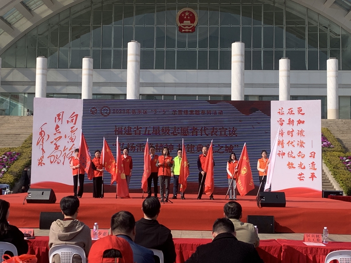 现场,福建省五星级志愿者代表宣读“弘扬雷锋精神 共建典范之城”倡议书,呼吁大家行动起来,弘扬“奉献、友爱、互助、进步”的志愿服务精神,立足新时代,展现新作为,共同书写新时代的雷锋故事!