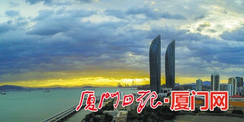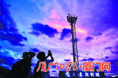 昨日傍晚,受“白鹿”台风影响,厦门西边出现了一道金色的云彩。(记者 王火炎 摄)
