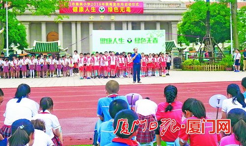 集美街道联合辖区学校开展“禁毒教育知识进校园”活动。