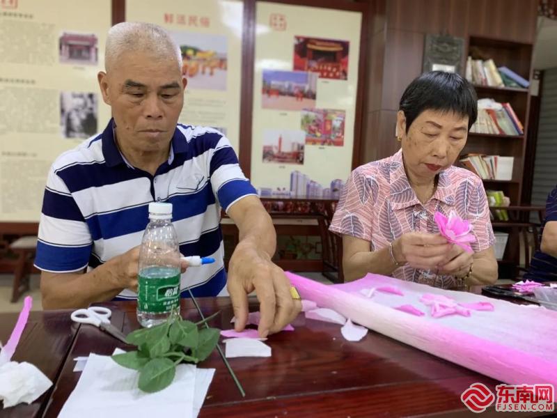 手工制作玫瑰花(天竺社区供图) 在手工环节,制作玫瑰花的步骤虽然简单,但是很考验耐心,老人们在遇到困难时,社工都耐心地进行教学,活动现场其乐融融,不一会儿,一簇簇形态各异的美丽花束就呈现在大家面前。 老人们对于爱意的表达较为腼腆,在社工的鼓励下,丈夫们都拿着亲手制作的玫瑰花,大声地向爱人表白:“我爱你,老婆。”阿姨们听到丈夫的表达都开心不已,陈阿姨表示:“结婚50多年了,能再次听到这句话,心里还是很开心的,感谢社工的邀请。” |
